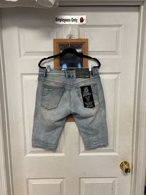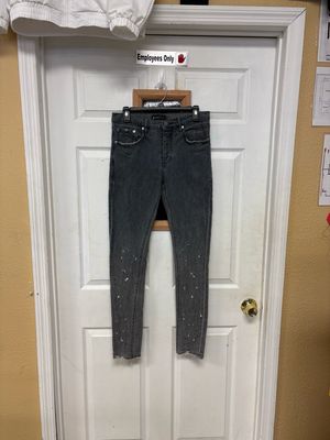 Grey paint distressed purple brand skinny jeans with back tags waist size 30