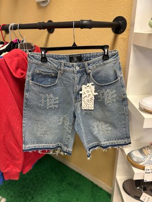 Mixed Emotion Rhinestone Denim Shorts 🔥 Y2K Bling Size 30